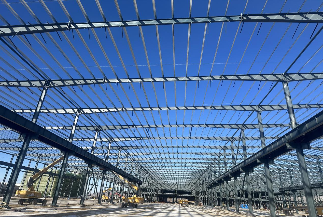 11月29日,鋼構(gòu)分公司緯景儲(chǔ)能智造基地建設(shè)項(xiàng)目鋼結(jié)構(gòu)安裝勝利完成,標(biāo)志著項(xiàng)目全面進(jìn)入圍護(hù)結(jié)構(gòu)安裝。