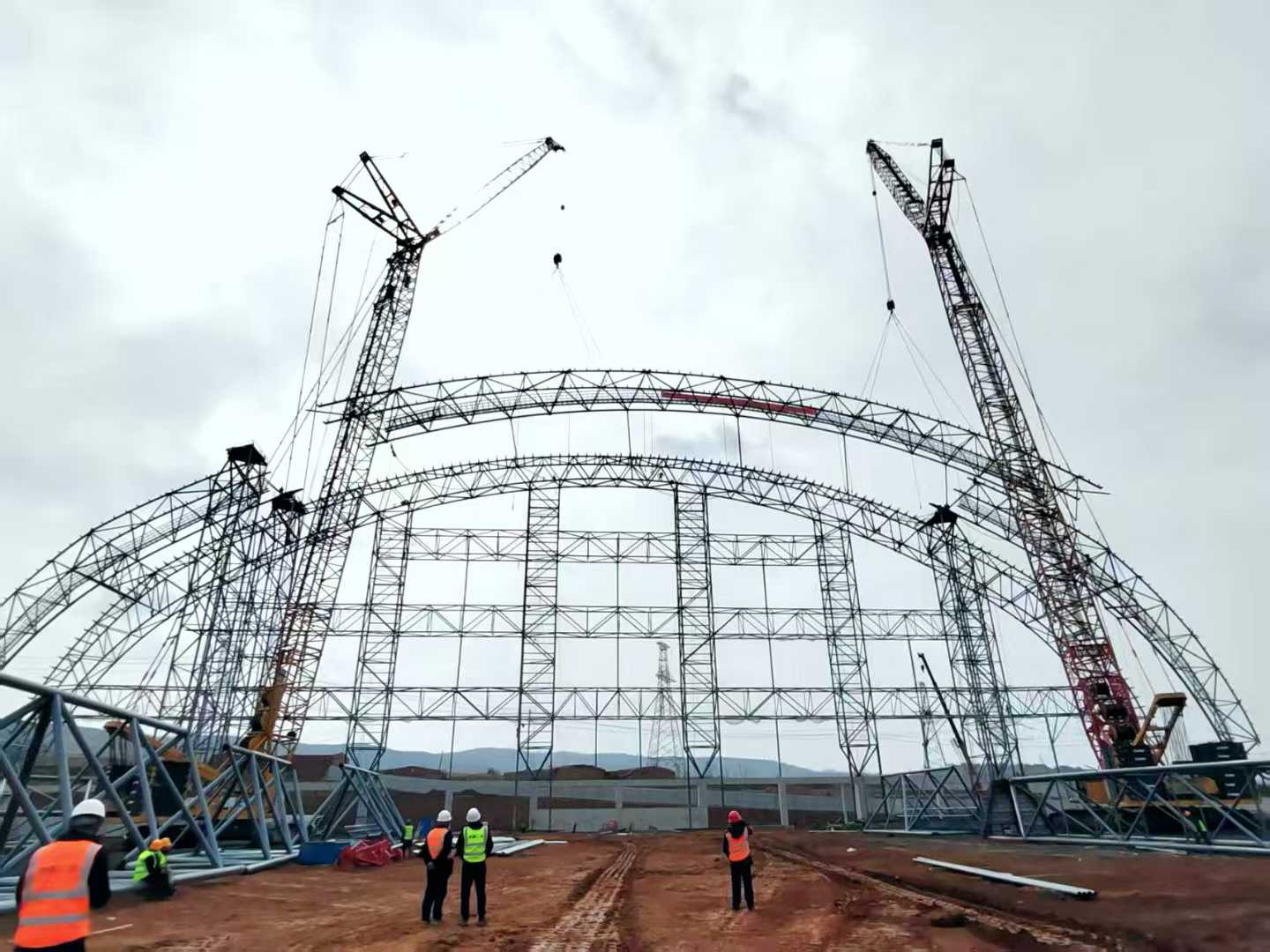 鋼桁架吊裝為高風(fēng)險作業(yè),為保證吊裝安全順利進行,項目建設(shè)團隊精心部署,精細(xì)作業(yè),吊裝方案經(jīng)多次反復(fù)模擬試驗,在施工過程中,各參建方鼓足干勁,加班加點,嚴(yán)把安全質(zhì)量關(guān),細(xì)節(jié)關(guān),監(jiān)督關(guān),嚴(yán)格按照規(guī)范要求施工,同時克服了高空作業(yè)施工難度大,吊裝部件體積大,重量大,桁架跨度大,安裝精度高等困難,保證了工程項目的進展順利進行。該大跨度管廊架項目的順利合龍,不僅是中國二冶施工技術(shù)的一次成功展示,也為后續(xù)施工奠定了基礎(chǔ),同時也標(biāo)志著該工程取得了階段性勝利。