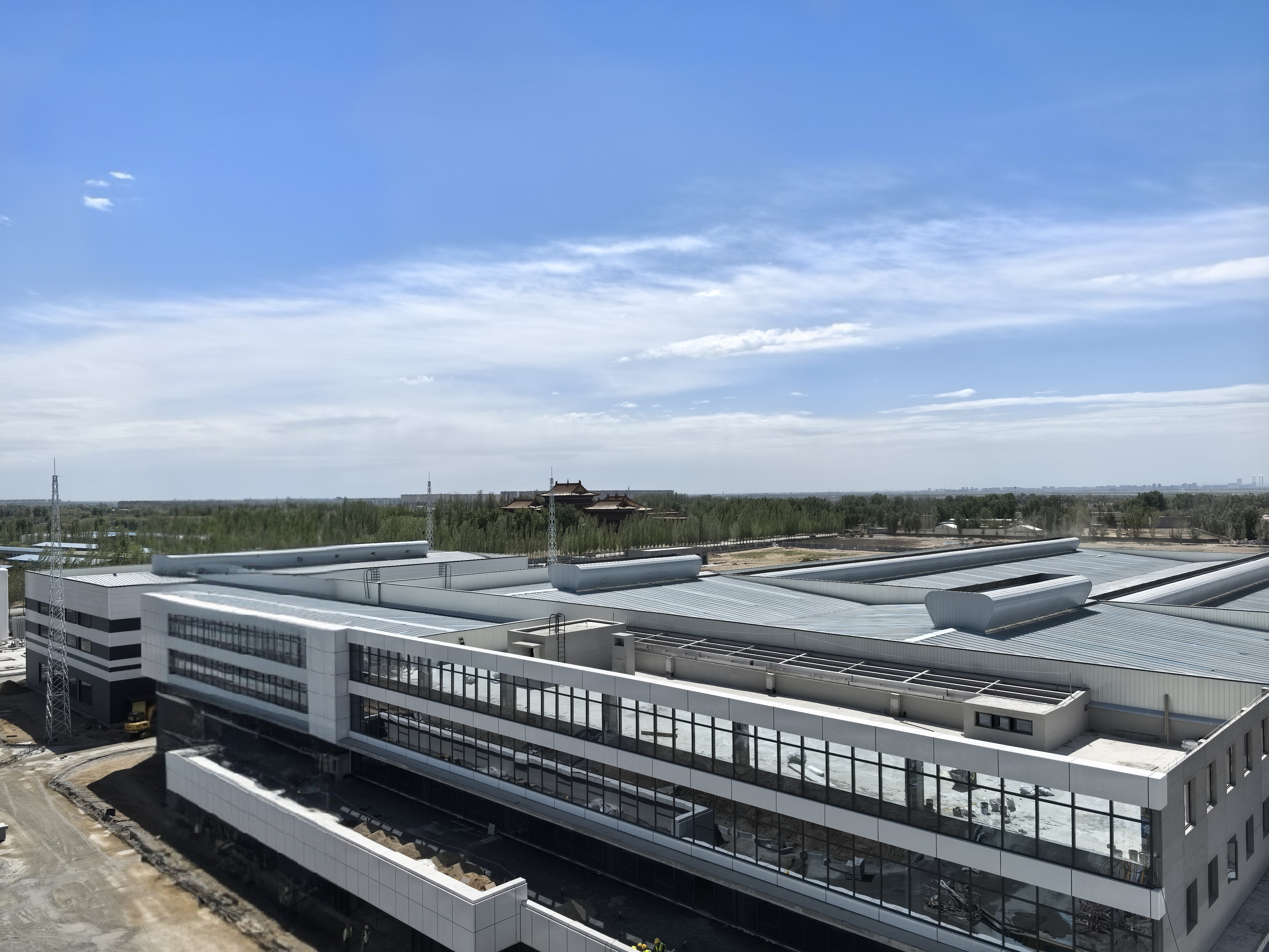 本項(xiàng)目坐落于包頭稀土高新區(qū)朝陽(yáng)路以東,騰飛大街以南,凌云路以北,星輝路以西。其中,由城建分公司施工的2#生產(chǎn)車(chē)間建筑面積2455.6平方米,單層門(mén)式鋼結(jié)構(gòu),高度15.73米,最大單跨跨度34.6米;3#生產(chǎn)車(chē)間建筑面積20167.86平方米,主體為單層門(mén)式鋼結(jié)構(gòu),附屬局部一層、三層混凝土框架結(jié)構(gòu),高度16.1米,最大單跨跨度43.1米;連廊建筑面積82.35平方米,混凝土框架結(jié)構(gòu),高度10.8米,最大單跨跨度13.5米。工程內(nèi)容包括建筑、結(jié)構(gòu)、給排水、電氣、暖通等。工程開(kāi)工建設(shè)后,項(xiàng)目團(tuán)隊(duì)以嚴(yán)苛標(biāo)準(zhǔn)推進(jìn)工程質(zhì)效,克服冬季低溫、結(jié)構(gòu)復(fù)雜等多項(xiàng)技術(shù)難題,統(tǒng)籌安全、質(zhì)量、進(jìn)度三項(xiàng)目標(biāo),大干168天,實(shí)現(xiàn)“當(dāng)年開(kāi)工、當(dāng)年竣工”的佳績(jī)。竣工驗(yàn)收中,評(píng)審專(zhuān)家一致認(rèn)為項(xiàng)目工程質(zhì)量、安全性能、工藝布局均達(dá)國(guó)內(nèi)領(lǐng)先水平,同意項(xiàng)目通過(guò)竣工驗(yàn)收。