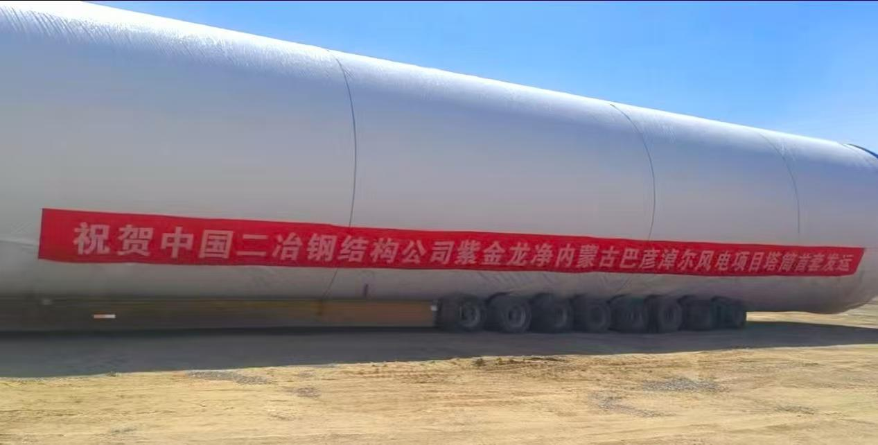 近日,由鋼構(gòu)分公司新能源事業(yè)部制作的紫金龍凈內(nèi)蒙古巴彥淖爾可再生能源替代工程風電EPC總承包一期70兆瓦項目首套塔筒順利發(fā)車。
