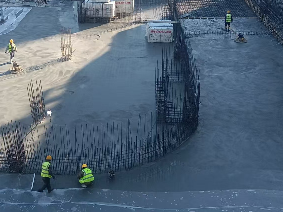 濟(jì)南姚家保障房項(xiàng)目位于山東省濟(jì)南市,屬于城中村改造類項(xiàng)目。項(xiàng)目占地約4萬平米,規(guī)劃建設(shè)1號(hào)-7號(hào)樓及地下車庫(kù)共8棟單體建筑,其中2號(hào)樓占地面積7200平方米。此次澆筑的筏板是2號(hào)樓A3區(qū)塊,面積為2050平方米,厚度50厘米且柱墩處厚度達(dá)1.2米。筏板是建筑的基礎(chǔ)承重結(jié)構(gòu),對(duì)保障房整體穩(wěn)定性至關(guān)重要。為確保澆筑工作高效有序推進(jìn),項(xiàng)目部重點(diǎn)落實(shí)三項(xiàng)核心舉措:一是嚴(yán)格遵循 “事前充分交底、事中精準(zhǔn)控制、事后科學(xué)養(yǎng)護(hù)” 的全過程管理原則,采用分層分塊澆筑工藝,保障混凝土澆筑均勻密實(shí),從技術(shù)層面筑牢工程質(zhì)量根基;二是針對(duì)澆筑期間低溫天氣挑戰(zhàn)與連續(xù)施工需求,提前制定專項(xiàng)應(yīng)對(duì)方案,通過鋪設(shè)保溫材料、科學(xué)調(diào)整混凝土配合比,規(guī)避低溫對(duì)混凝土強(qiáng)度的不利影響,同時(shí)前置辦理夜間施工許可手續(xù)、優(yōu)化資源調(diào)配方案,組織施工人員實(shí)行多班次輪班作業(yè),確保澆筑質(zhì)量達(dá)標(biāo)且過程不間斷;三是建立全流程管控機(jī)制,對(duì)混凝土供應(yīng)、運(yùn)輸環(huán)節(jié)實(shí)施動(dòng)態(tài)監(jiān)控,由項(xiàng)目部管理人員與項(xiàng)目監(jiān)理人員共同對(duì)澆筑環(huán)節(jié)開展旁站監(jiān)督,全方位把控工程進(jìn)度、質(zhì)量與施工安全。經(jīng)過全體參建人員 33 小時(shí)的連續(xù)奮戰(zhàn),首塊筏板澆筑工作按計(jì)劃順利完成,為后續(xù)主體結(jié)構(gòu)施工奠定了堅(jiān)實(shí)基礎(chǔ)。