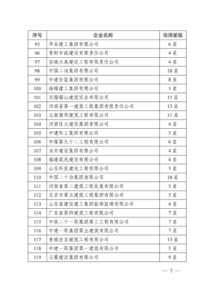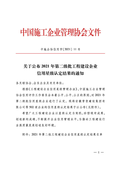 6月28日,工程建設(shè)行業(yè)信用體系建設(shè)平臺(tái)(中施企協(xié)信用字【2021】11號(hào))發(fā)布2021年第二批工程建設(shè)企業(yè)信用星級(jí)認(rèn)定結(jié)果,中國(guó)二冶獲得“工程建設(shè)企業(yè)信用星級(jí)18星級(jí)”。