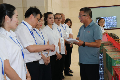 王文海首先對(duì)中國二冶一線員工們的辛勤工作表示感謝和崇高的敬意,他表示,進(jìn)入七月份后,連日來的高溫給大家生活生產(chǎn)帶來了諸多不便,尤其對(duì)堅(jiān)守一線的施工人員更是一大考驗(yàn),而中國二冶一線職工們?cè)诟邷靥鞖庀乱廊灰粤己玫墓ぷ髯黠L(fēng)和精神面貌堅(jiān)守在崗位,他們愛崗敬業(yè)的態(tài)度讓人非常敬佩,希望中國二冶廣大職工繼續(xù)發(fā)揚(yáng)優(yōu)良作風(fēng),守好安全崗,牢固樹立安全生產(chǎn)的理念,做好防暑降溫,注重自身健康和安全,大力弘揚(yáng)勞模精神、勞動(dòng)精神、工匠精神,以飽滿的激情、沖天的干勁、主人翁的姿態(tài),為中國二冶高質(zhì)量發(fā)展、為包頭市經(jīng)濟(jì)建設(shè)作出更多貢獻(xiàn)。包頭市總工會(huì)及各級(jí)工會(huì)組織要充分發(fā)揮聯(lián)系職工群眾的橋梁紐帶作用,加強(qiáng)對(duì)職工的思想政治引領(lǐng),堅(jiān)定廣大職工聽黨話、跟黨走的信心和決心。