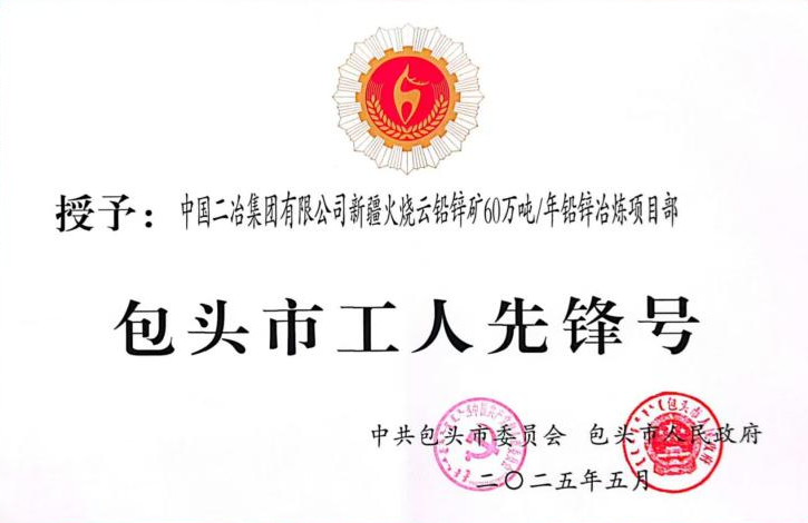 近日,中共包頭市委員會(huì)包頭市人民政府公布關(guān)于表彰包頭市五一勞動(dòng)獎(jiǎng)的決定,中國(guó)二冶新疆火燒云鉛鋅礦60萬噸/年鉛鋅冶煉工程項(xiàng)目榮獲“2025年包頭市工人先鋒號(hào)”榮譽(yù)稱號(hào)。